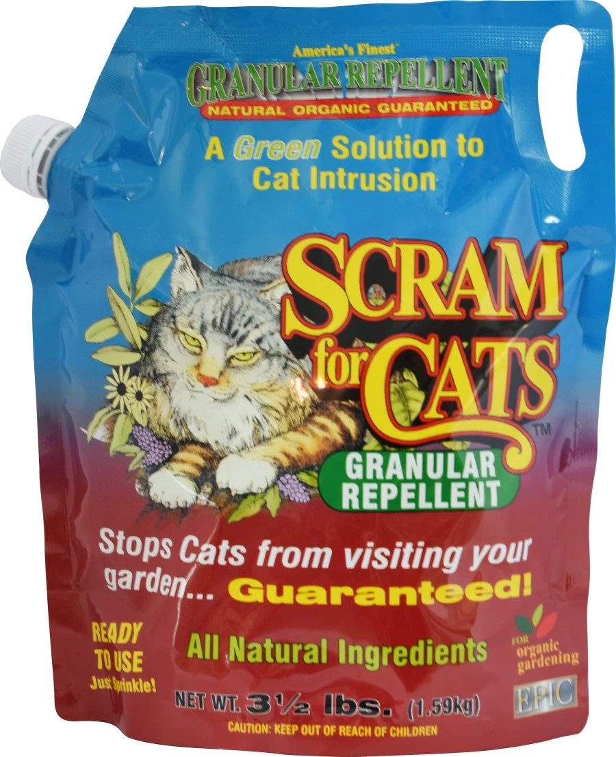 The Enviro Scram For Cats Granular Repellent is a highly effective solution to deter cats from unwanted areas in your home or garden. This quarter pallet display contains 3.5 lb of granular repellent, providing ample supply to cover a large area. The granules are made from natural ingredients that are safe for cats and the environment. Simply sprinkle the granules in areas where you want to discourage cats from entering, such as flower beds, gardens, or other restricted areas. The strong scent of the granules acts as a deterrent, making cats avoid the treated areas. This granular repellent is easy to use, long-lasting, and provides a humane way to protect your space from unwanted cat activity.